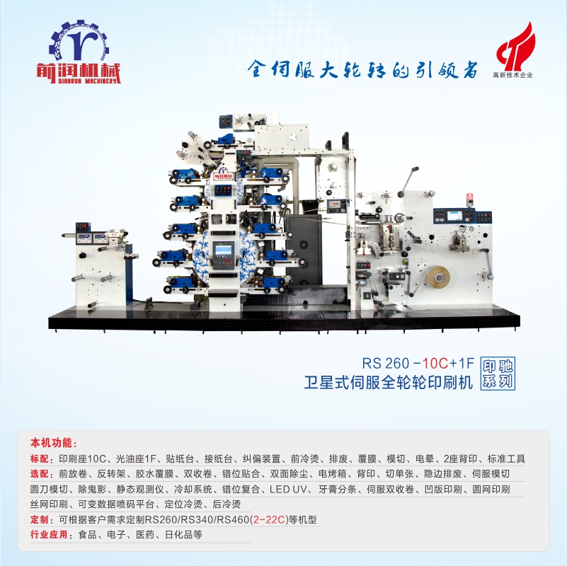 1.Compared with common label printing machines, RS260-10C+1F can reach a high speed of 100M/min andl with more precise positioning and more accurate color printing.  Advanced ink distribution ensures more even coloring.