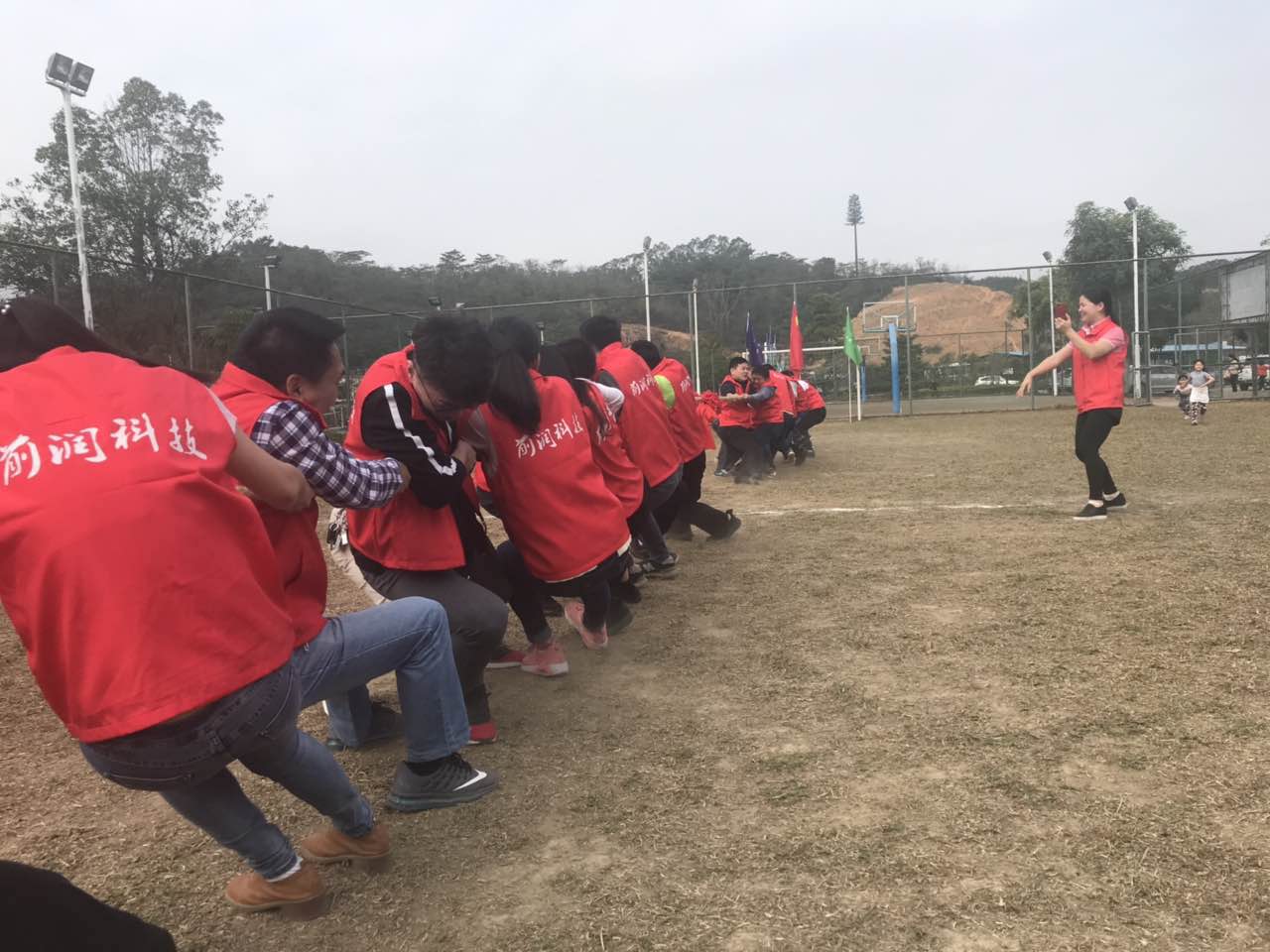 比賽場面異常激烈,團結了人心,凝聚了部門團隊合作精神,女同志在一旁充當前著拉拉隊。我們本著公平、公正、公開的原則,進行裁判,比賽中,充分體現了前潤家人們的堅強,勇敢,團結協作的精神,啦啦隊女同志們都表現出極大的參與興趣,為拔河隊員吶喊助威。每當比賽一開始,拉拉隊的隊員們就發出了響徹云霄的吶喊助威聲,伴隨著這吶喊聲,參賽選手們像憤怒了的獅子一樣,用盡全身的力氣與對手頑強拼搏。很多隊員手都磨紅了。由此可以看出前潤家人們都有為集體爭榮譽爭光的團隊意識,同時也可見都有著頑強的毅力和拼搏精神。特別是當雙方勝負難分的時刻,盡管他們此時都已經大汗淋漓,身心疲憊,但是他們仍毫不退縮,而是咬緊牙關,堅持到底,其精神值得我們大家學習;