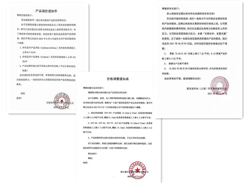 自8月5日起,強(qiáng)邦、康爾達(dá)、愛克發(fā)華光產(chǎn)品厚版均在原來價(jià)格基礎(chǔ)上上調(diào),所有型號薄版都在原來價(jià)格基礎(chǔ)上上調(diào)。