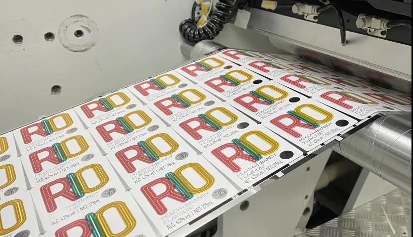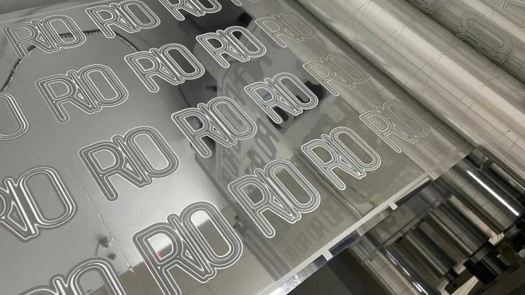 預先制作好的鐳射效果,再進行定位套印。標簽表面的逆向光油處理,與浮雕效果的字母形成了啞與亮的對比,也讓產(chǎn)品在貨架上有更好的吸睛作用。