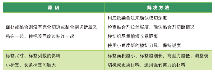 模切是不干膠標(biāo)簽加工過程中必不可少的環(huán)節(jié),也是最容易被標(biāo)簽印企的技術(shù)部門忽略的一個重要環(huán)節(jié)。模切效果的好壞將直接影響到客戶的使用體驗,其中模切掉標(biāo)是困擾廣大標(biāo)簽印企的老大難題之一。