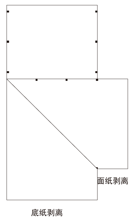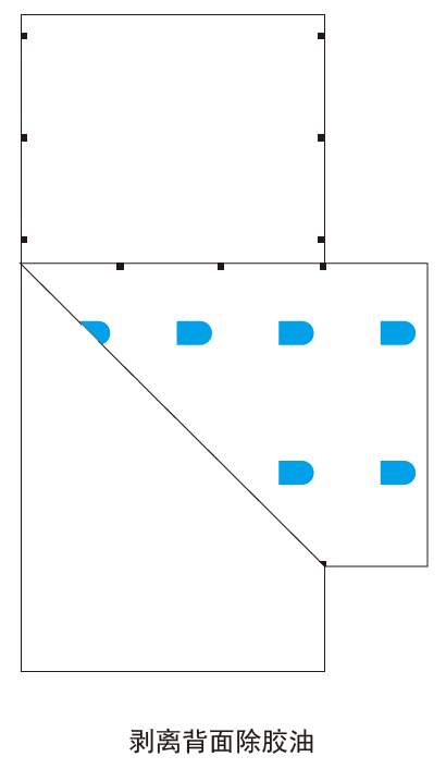 如下圖,不干膠標(biāo)簽面層和底層剝離后,在面層反面印有可變碼的位置處,采用印刷方式覆蓋透明除膠油,保護(hù)油覆蓋住面層反面可變碼處的不干膠層,讓背面局部不具備粘性,達(dá)到面層背面局部除膠的效果
