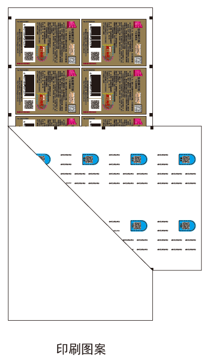 從圖中可以看到,標(biāo)簽的正面噴印追溯二維碼,防偽數(shù)字碼和背面除膠區(qū)域噴印,其他背面區(qū)域噴印防竄數(shù)字碼,正面局部做了撕拉口設(shè)計(jì)。